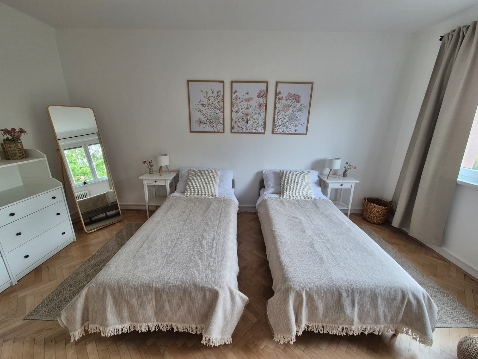 Central Apartment ve Studénce nabízí pohodlné a flexibilní řešení ubytování až pro 4 osoby. K dispozici jsou dvě jednolůžkové postele, které lze snadno spojit do plnohodnotné manželské postele, a rozkládací pohovka v obývacím pokoji. Díky tomuto uspořádání je možné vytvořit až dvě oddělené ložnice, což ocení zejména rodiny s dětmi nebo hosté cestující společně, ale chtějící více soukromí.